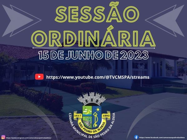 A próxima Sessão Ordinária da Câmara Municipal de São Pedro da Aldeia acontecerá terça-feira (20), às 11h.