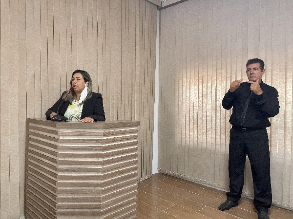 Finalmente, a sessão de hoje foi marcada pela estreia de um intérprete de LIBRAS (Língua Brasileira de Sinais). Em mais uma iniciativa de acessibilidade realizada pelo Poder Legislativo municipal, a Casa Legislativa contará com a presença do intérprete, possibilitando às pessoas com deficiência auditiva acompanharem as discussões e votações dos projetos e demais trabalhos dos vereadores.